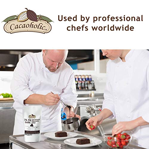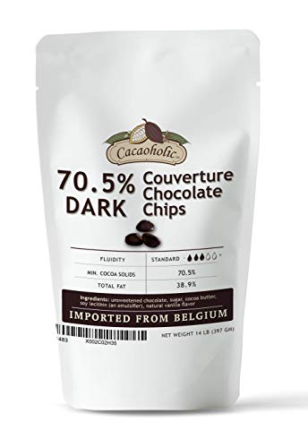 Classic Dark Couverture Chocolate contains a higher cocoa butter percentage than regular chocolate chips, making it ideal for melting and creating chocolate confections.