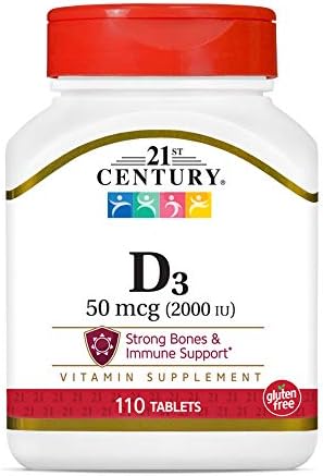 Vitamin D is essential for absorption of calcium and necessary support for healthy bones and a healthy immune system. This formula from 21st Century has no added sugar, salt, yeast, artificial flavors, colors or preservatives.