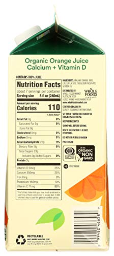 365 by Whole Foods Market, Organic 100% Orange Juice, Calcium & Vitamin D (Not From Concentrate), 59 Fl Oz