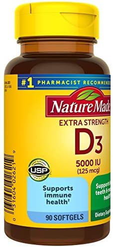 Extra Strength Vitamin D3 5000 IU (125 mcg), 90 Softgels, High Potency Vitamin D Helps Support Immune Health, Strong Bones and Teeth, & Muscle Function