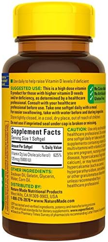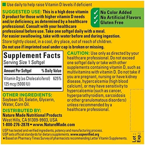 #1 PHARMACIST RECOMMENDED VITAMIN AND SUPPLEMENT BRAND AND USP VERIFIED: Because Nature Made is committed to quality and purity, this Vitamin D supplement is also USP Verified, an independent organization that tests for quality and purity