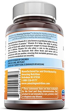 IDEAL FOR YOUR HEALTHY DIET Amazing Nutrition Vitamin B6 is free of artificial colors, flavors and preservatives making them a healthy addition to your healthy diet