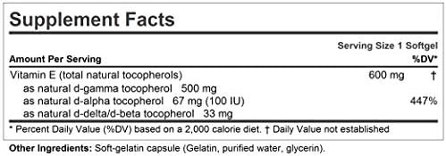 SUPERIOR 100% PURE BIO-ACTIVE INGREDIENTS – Delivers 600 mg of all four natural Tocopherols with 500 mg of all-important Gamma Tocopherol. Contains NO Milk / Dairy-Free, Gluten-Free; NO soy, yeast, corn, wheat, sodium, salt, sugar, cholesterol, color, preservative, common allergens or manufacturing additives.