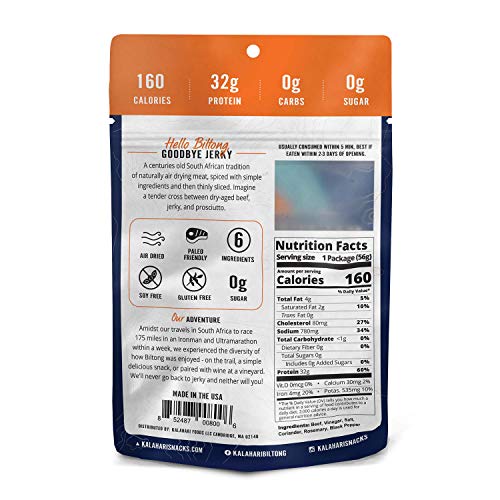 BETTER THAN JERKY: Kalahari Biltong has zero sugar, no fillers or hidden ingredients, and has more protein per serving (32g) than conventional jerky.