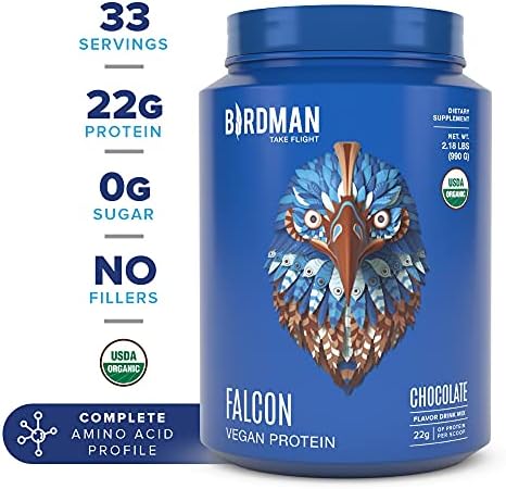 Birdman Falcon Premium Organic Plant Based Protein Powder, Vegan, Low Net Carbs, Keto, No Sugar Added, Non Dairy, Gluten-Free, Soy-Free, Lactose-Free, Non-GMO, Chocolate Flavor 33 Servings, 2.18lb