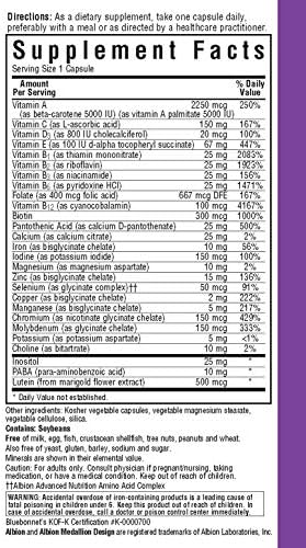 Bluebonnet Multi one is a single daily multivitamin and Multimineral dietary supplement in an easy-to-swallow, two-piece vegetable capsule (Vcap) and is formulated with highly efficient, patented Albion Chelated Minerals and popular carotenoids, such as beta carotene and FloraGLO lutein from marigold extract.