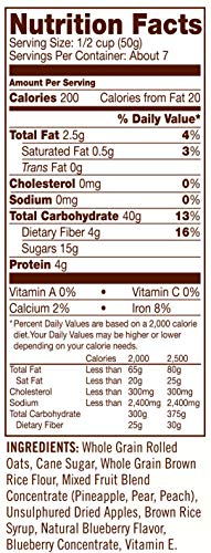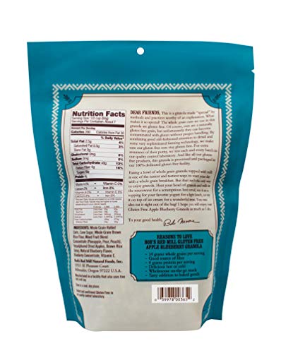 Bob’s Red Mill Gluten Free Apple Blueberry Granola is a tasty whole grain cereal perfect for breakfast or an on-the-go snack. The crunchy clusters and sweet flavor will keep you reaching for more. Made with gluten free old-fashioned oats, this granola is delightful stirred into your favorite yogurt with berries or sprinkled over ice cream.