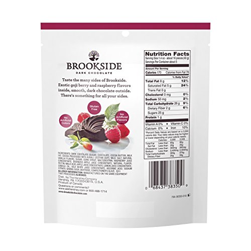 Brookside Chocolatiers have artfully blended exotic fruit juices & flavors from around the world to create the ultimate chocolate experience. Each piece is the perfect combination of smooth dark chocolate covering soft centers made with the flavors of goji and raspberries that create a perfect way to make the everyday more exotic.