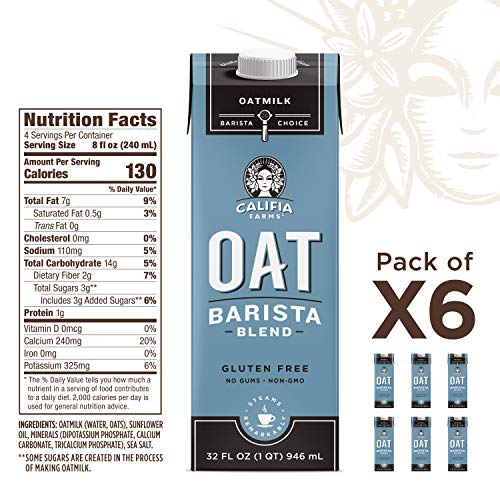 Califia Farms – Oat Milk, Original Barista Blend, 32 Oz (Pack of 6) | Dairy Free | Creamer | Vegan | Plant Based | Gluten-Free | Non-GMO | Shelf Stable