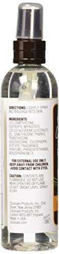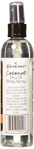 Coconut dry oil Body Spray will leave your skin feeling silky smooth and protected. This non-greasy formula dries in seconds. For use as a daily skin moisturizer and conditioner. Ideal for use after a shower or bath.