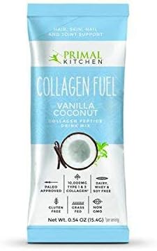 Blend, mix and shake on-the-go with a 12-Pack Box of Single Serving Collagen Fuel Packets! PALEO & WHEY FREE: Primal Kitchen Collagen Fuel is the perfect supplement to help support connective tissue, skin, hair and nails, adding 18,500 – 19,500 milligrams of collagen per serving. GRASS-FED COLLAGEN: Primal Kitchen Collagen Fuel Protein Powder contains collagen hydrolysate from grass-fed cows, which is broken down into individual amino acids aiding in absorption and digestion. PROMOTES GUT HEALTH: Primal Kitchen’s Collagen Fuel also contains 20 grams of hydrolyzed collagen protein, healthy fat from coconut milk and prebiotic fiber for digestive and gut health. DAIRY + SOY FREE: Primal Kitchen Collagen Fuel is sugar free, gluten free, dairy free, whey free and soy free, and paleo and primal friendly. DELICOUS & EASY TO DRINK: Primal Kitchen Vanilla Coconut Collagen Fuel is made with vanilla bean and coconut milk for exceptional flavor mixed with water or combined in a shake or smoothie. These statements have not been evaluated by the Food and Drug Administration. This product is not intended to diagnose, treat, cure or prevent any disease.