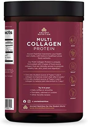 EASY TO USE & PACKED WITH NUTRIENTS: Two scoops of Ancient Nutrition Multi Collagen Protein powder provides 20g of collagen, 18g protein, 200% DV of Vitamin C and 4B CFU* probiotics (*at time of manufacture)! Add 2 scoops to any smoothie, protein shake, t