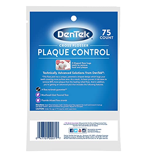 [ad_1] DenTek Cross Flosser Plaque Control Floss Picks feature a patented X-shaped floss that hugs teeth to remove food and plaque. This unique 2x Cross Floss design removes 80% more plaque than the leading rolled floss*. The floss on DenTek Cross Flosser Plaque Control Floss Picks is Mouthwash blast flavored and infused with fluoride. While your teeth may feel clean after using a toothbrush and toothpaste, they’re not fully clean without cleaning the spaces between teeth where food and plaque tend to remain. Use DenTek Cross Flosser Plaque Control Floss Picks to remove plaque and bits of food that often stay stuck between your teeth. Help prevent tooth decay and tooth stains by flossing after every meal. DenTek Cross Flosser Plaque Control Floss Picks come with a floss no-break assurance – DenTek assures the floss on DenTek Cross Flosser Plaque Control Floss Picks will not break with normal use or your money back**. DenTek Floss Picks are the first floss pick to be accepted by the ADA. Go beyond brushing with DenTek! We have an unparalleled array of advanced dental technology to help preserve and protect your teeth for a lifetime. *In laboratory testing. **Proof of purchase required.