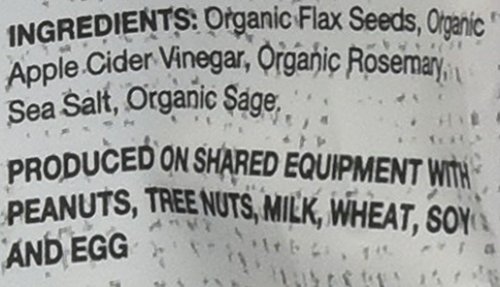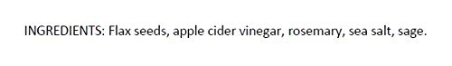 Ingredients include Organic Flax Seeds, Organic Apple Cider Vinegar, Organic Rosemary, Sea Salt, Organic Sage