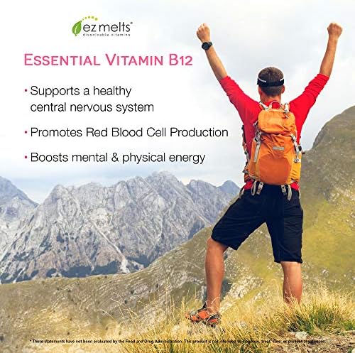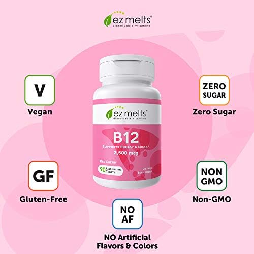 EZ Melts B12 as Methylcobalamin, 2,500 mcg, Sublingual Vitamins, Vegan, Zero Sugar, Natural Cherry Flavor, 90 Fast Dissolve Tablets