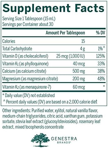 Citrate formula with vitamins D & K. Ideal for use during pregnancy. Great taste. Delicious, natural vanilla-flavoured formula. Calcium and magnesium are delivered in citrate form providing superior bioavailability. Cal Mag Vanilla Liquid + is a delicious, natural vanilla-flavoured comprehensive bone support formula that contains calcium and magnesium along with therapeutic dosages of other important vitamins. Calcium and magnesium along with therapeutic dosages of vitamins D and K to help develop and maintain bones.