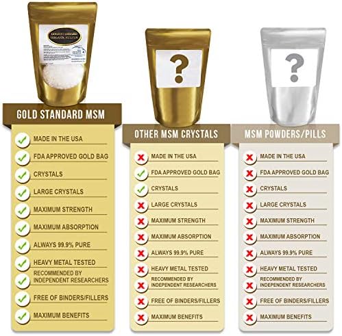Gold Standard: This is the original MSM in a gold bag, the original and Only Large Crystal Organic Sulfur – 99.9% Pure MSM.