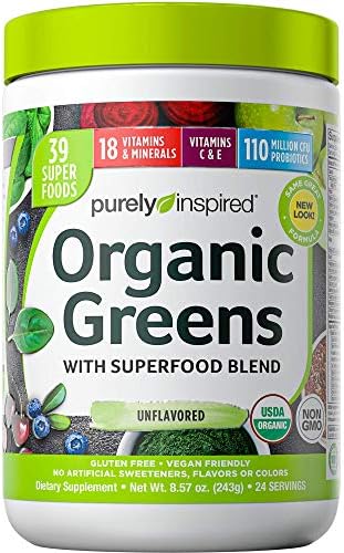 Purely Inspired USDA Certified Organic greens supplies you with an ultra clean formula that contains no artificial sweeteners, colors or dyes to ensure you are only getting the highest quality superfoods and multivitamins. This convenient greens powder can be added to smoothies, soups or sauces. 100 percent vegan friendly and non GMO its an excellent way to add key greens to your daily diet.