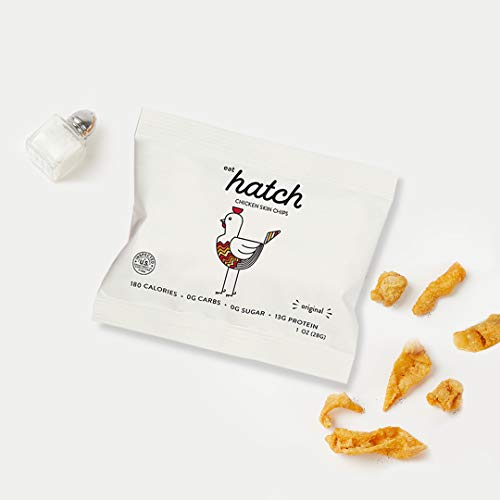 We love chicken and weÕre pretty sure you do too! Enjoy one of your favorite foods mess-free & on-the-go with Hatch Chicken Chips, a super tasty, salty, and satisfying rotisserie chicken chip made from 100% real chicken, and a delicious alternative to pork rinds and jerky. With the crispy and crunchy texture of potato chips and the protein of jerky our chips are the ultimate low carb, high protein snack. Enjoy our premium and flavorful chips straight from the bag, paired with your favorite beverage, sprinkled on a salad, or served on a charcuterie plate. We took great efforts to design a beautiful and functional bag that looks as good as our chips taste. So go ahead and swap your potato chips for this guilt free, keto friendly, gluten free, and dairy free snack that TASTES GREAT!