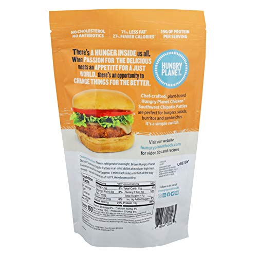19G PLANT-BASED PROTEIN: Hungry Planet Chicken Chipotle Patties are a complete protein with 19g per serving.