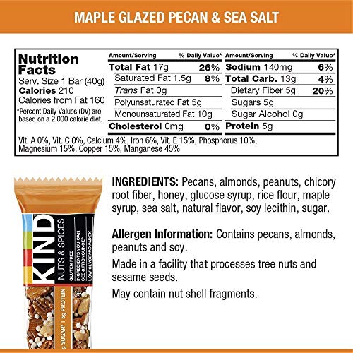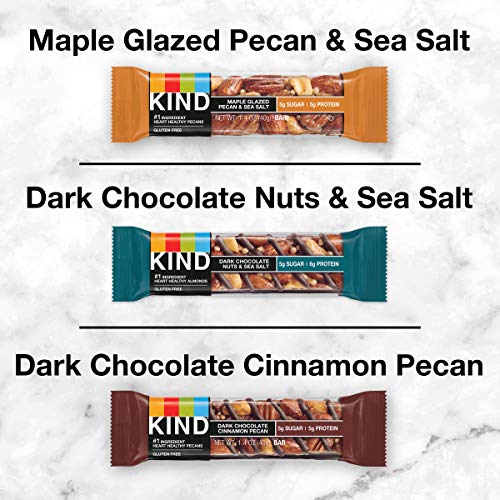 [ad_1] The KIND bars variety pack gives you three delicious flavors of gluten free bars packed with quality ingredients like almonds and pecans. Every nutrition bar in this variety pack of KIND bars starts with nuts as the #1 ingredient. KIND Dark Chocolate Nuts & Sea Salt bars feature whole almonds, dark chocolate, and sea salt for a delicious, healthy snack bar with 5 grams of sugar and 6 grams of protein. KIND Dark Chocolate Cinnamon Pecan bars are made with real, wholesome ingredients like pecans, cinnamon and the taste of dark chocolate, and contain 5 grams of sugar and 5 grams of protein. KIND Maple Glazed Pecan & Sea Salt bars pair pecans and almonds with maple, and contain 5 grams of sugar and 5 grams of protein. These individually wrapped snacks are easy to take with you as a quick nutrition bars when life gets in the way. These KIND nut bars are also gluten free, have a low glycemic index, and are made without genetically engineered ingredients.