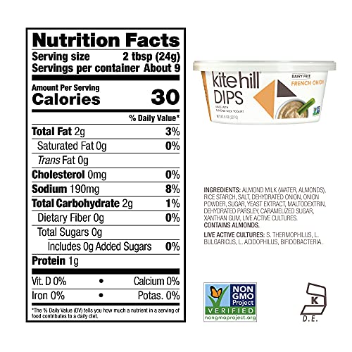 Our French Onion Almond Milk Yogurt Dip is dairy free, soy free, gluten free, vegan, kosher and is Non-GMO Project verified with no artificial flavors or preservatives