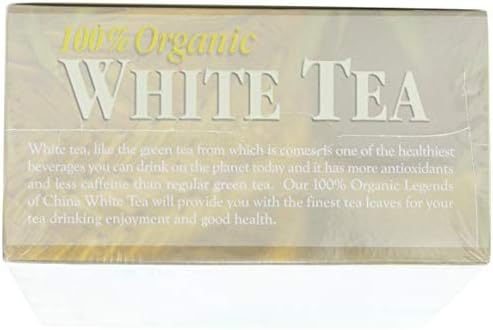 [ad_1] Our Organic Legends of China White Tea (camellia sinensis) comes from high in the mountains of the Fujian Province of China and is grown without pesticides, with natural fertilizer and with careful attention for the preservation of the ecosystem. the caffeine content of our organic green tea is approximately 20 to 30 mg. of caffeine per cup. (Black tea contains 80 to 120 mg. and coffee contains 100 to 200 mg.) Tea bags are oxygen bleached. White tea is considered to be one of the healthiest beverages you can drink on the planet today. Full of health promoting antioxidants, our 100% Organic Legends of China White Tea will provide you with the finest tea leaves for your tea drinking enjoyment and good health. Plus, with 100 bags per box, you will love the value. Great for treating large number of guests at a party, or any hospitality event.