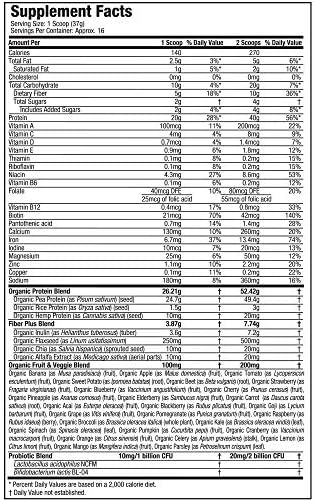 CONVENIENT, SUPERIOR FORMULA – It’s an opportune way to add 20g of plant-based protein, 6g of fiber, omega-3s, 27 fruits and vegetables, 17 vitamins and minerals, and 1 billion CFU probiotics, antioxidant vitamins C & E