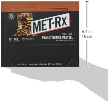 Sold as “MET-Rx Big 100 Colossal Protein Bar, Peanut Butter Pretzel, 9 Count (Pack of 1)”