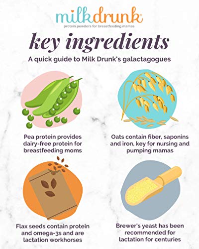 Milk Drunk Fenugreek-Free – Dairy Free Vanilla Protein Powder for Breastfeeding – 20 Servings of Vegan Protein & Lactation-Boosting Ingredients – Oats, Flax, Brewer’s Yeast – Gluten Free