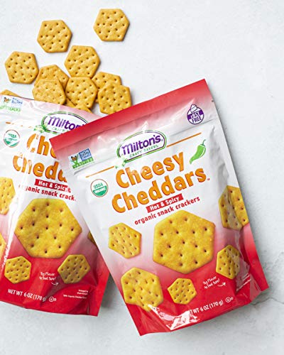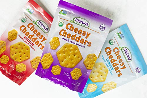 Milton’s Organic Cheesy Cheddars Crackers, 3 Flavor Variety Bundle. Crispy & Organic Baked Grain Crackers (White Cheddar, Hot & Spicy, and Cheesy Cheddars, 6.0 oz).