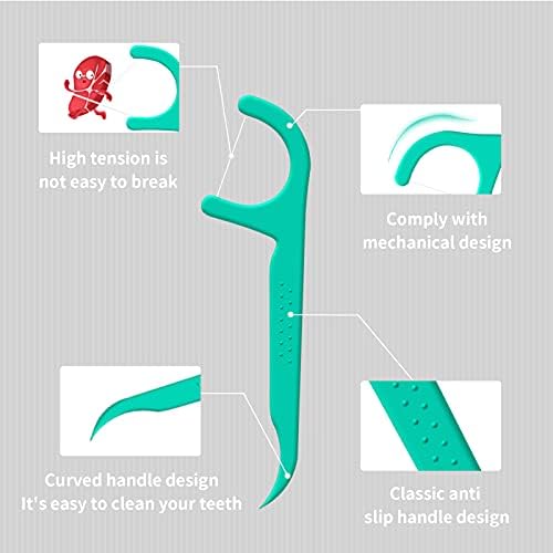 【Easy To Use】The ergonomically designed, handle design is located at the golden point of the dental floss sticks. The middle part is convex and non-slip, which can improve the floss sticks hand feeling and save effort and protect the teeth.