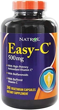 Natrol Easy-C with Bioflavonoids Description:With High-Potency Antioxidant Vitamin CWith BioflavonoidsWith Esterfied Vitamin CEasy-C ? a high-potency antioxidant vitamin C supplement essentialfor optimal nutrition. New, easy-on-the-stomach formula withEsterified vitamin C helps provide free radical protection andkeeps your body in fighting form. Help build your body?s defenseswith Easy-C. Free Of Yeast, wheat, corn, milk, egg, soy, glutens,artificial colors and flavors, added sugar, starch andpreservatives. Disclaimer These statements have not been evaluatedby the FDA. These products are not intended to diagnose, treat,cure, or prevent any disease.(Note: This Product Description Is Informational Only. AlwaysCheck The Actual Product Label In Your Possession For The MostAccurate Ingredient Information Before Use. For Any Health OrDietary Related Matter Always Consult Your Doctor Before Use.)Ingredients:Natrol Easy-C with Bioflavonoids DirectionsTake 1 capsule, up to two times daily, preferably with a FactsServing Size: 1 Vegetarian CapsuleServings Per Container: 240Amt Per Serving% Daily ValueVitamin C (from Calcium Ascorbate, Ascorbyl Palmitate)500 mg833%Calcium (from Calcium Ascorbate)50 mg5%Citrus Bioflavonoid Complex (may be derived from Lemon, Orange,Lime, Tangerine)200 mg**Daily value not established. Other Ingredients: Hypromellose,magnesium stearate, silica and water. Warnings Consult yourhealthcare professional prior to use if you have or suspect amedical condition, are taking prescription drugs, or are pregnantor lactating. 047469051037Pack Of: 1