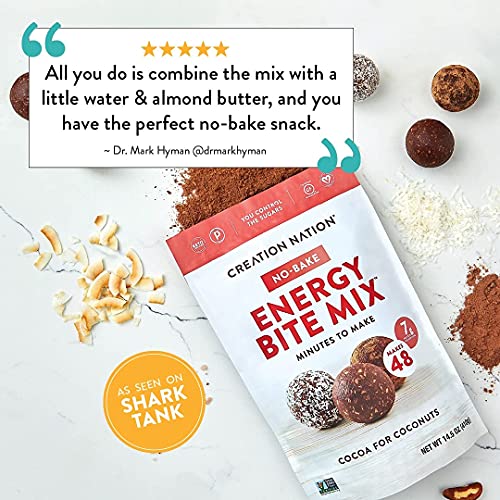 MIX, ROLL, HAVE A BALL! Endless fun & easy recipes for the whole family like: “Breakfast Protein Bites” = Creation Nation Mix + 1/2 Cup Milk or Mashed Banana + 1/2 Cup Almond or Peanut Butter. Makes 24.