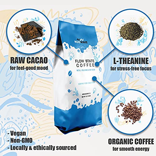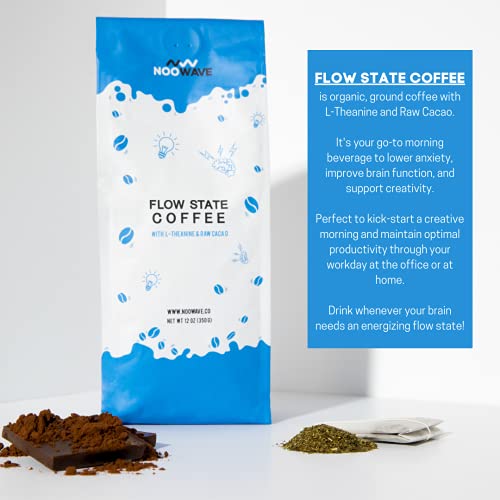 Flow State Coffee is organic, ground coffee with L-Theanine and Raw Cacao.