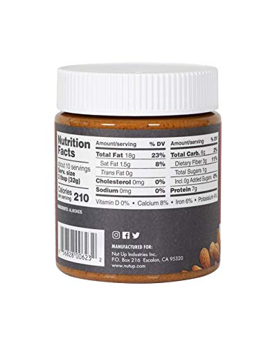 Nut Up Natural Almond Butter, 100% Almonds Creamy Spread – Vegan, Gluten Free, Non-GMO, No Preservatives – 12 Ounce Jar