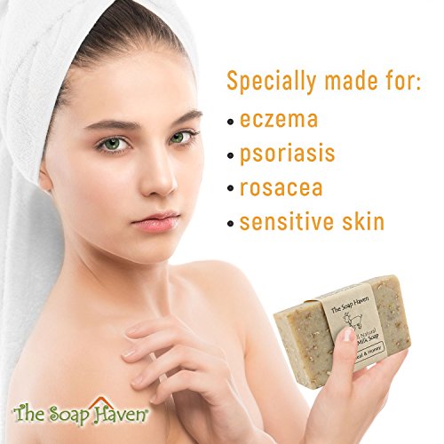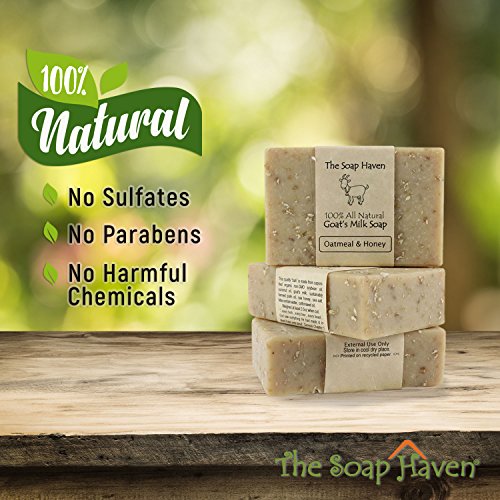 Oatmeal Soap – 4 Oatmeal & Honey, Goat Milk Soap Bars. All Natural, Unscented Soap – Wonderful for Eczema, Psoriasis, sensitive skin and all skin types. SLS Free, NO Parabens. Handmade in USA.