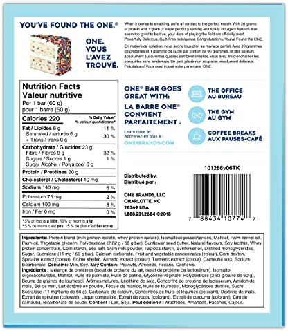 ONE Protein Bars, Birthday Cake, Gluten Free Protein Bars with 20g Protein and Only 1g Sugar, Guilt-Free Snacking for High Protein Diets, 2.12 oz (12 Pack)