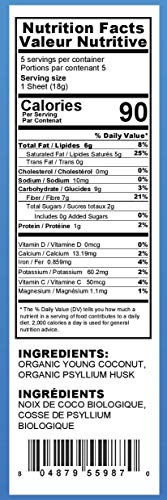 80 calories per wrap 5 coconut wraps per package 1 ingredient: Organic Young Coconuts