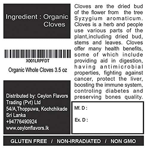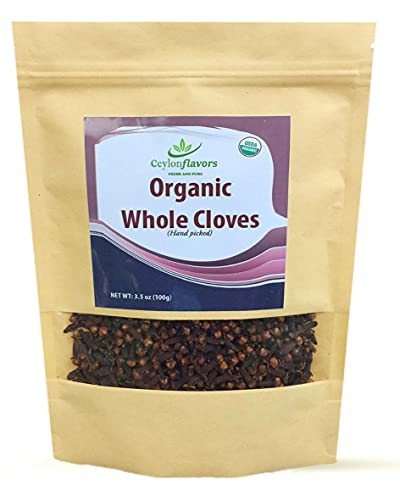 Organic premium grade hand picked whole cloves 3.5 oz finest quality. Harvested from a USDA Certified Organic Farm in Sri Lanka