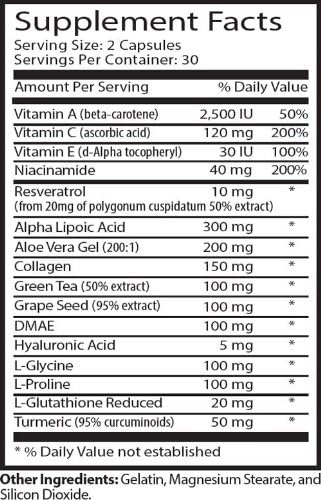 ANTI-WRINKLE ANTI-AGING COMPLEX: Each bottle 60 Capsules – all natural formula that helps protect against age-related damage. Made in USA. Scientificaly standartized to the highest level of our active principles. 30-day 100% money-back guaranteed.