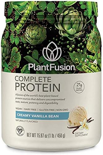 PlantFusion Complete Protein Powder, Vanilla Bean, No Soy or Rice, 15 Servings, 21g Protein, 1lb Tub