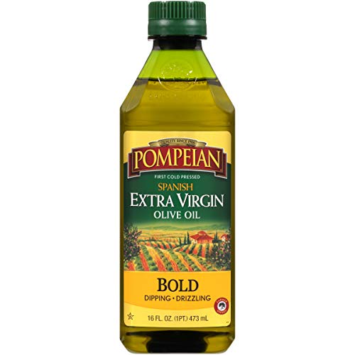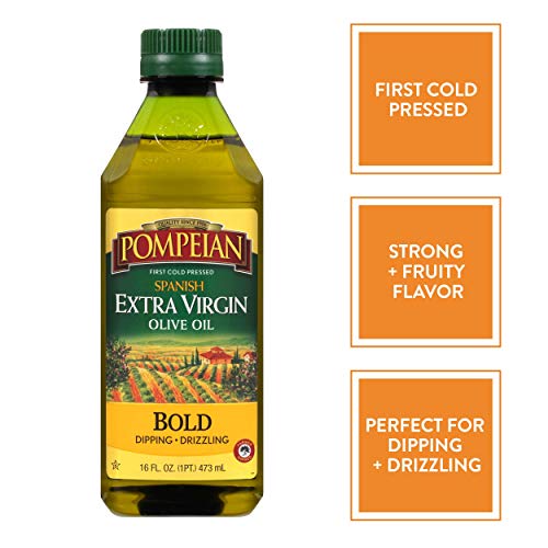 Pompeian Spanish Bold Extra Virgin Olive Oil, First Cold Pressed, Strong and Fruity Flavor, Perfect for Dipping and Drizzling, Naturally Gluten Free, Non-Allergenic, Non-GMO, 16 FL. OZ., Single Bottle