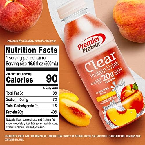Each clear protein drink contains 20g of whey protein isolate, 90 calories, 0g sugar, 2g carbs. No artificial flavors, No soy ingredients, Gluten Free, Sugar free, fat free Enjoy as a refreshing, hydrating beverage any time of day or mix with fruit and freeze for delicious, protein-packed popsicles. Packed with more calories from protein that your body needs than from sugar.