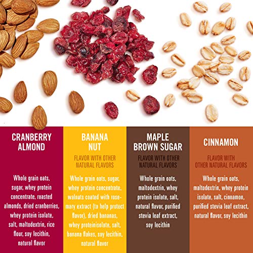 Includes 24 Individual Oatmeal Packets: 4 Cranberry Almond, 4 Banana Nut, 8 Cinnamon, and 8 Maple Brown Sugar