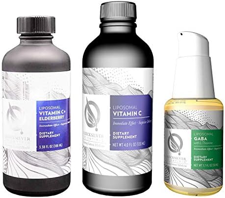 Quicksilver Scientific Immune Support Set with Vitamin C (4 fl oz), Vitamin C + Elderberry (3.38 fl oz), and GABA + L-Theanine (1.7 fl oz) – Liposomal Liquid for Superior Absorption (3 Products)