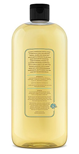 [ad_1] Quinn’s Castile Soap contains certified Organic Argan, Jojoba and Hemp Oils. The ingredients are fragrance-free and biodegradable – good for you and for the environment. Plus, our formula is gentle enough for babies, pets and sensitive skin. Quinn’s Castile Soap is concentrated, so please dilute before using on skin, hair or fur. We encourage you to create your own signature soaps by adding your favorite essential oils. SO MANY USES! One soap, a variety of purposes – from head-to-toe body care, household cleaning, laundry and even pet care. INGREDIENTS Purified Water, Coconut Oil, Potassium Hydroxide, Argan Oil, Jojoba Oil, Hemp Oil, Olive Oil, Vegetable Glycerin Certified Organic Ingredients None remains after saponifying oils into soap and glycerine