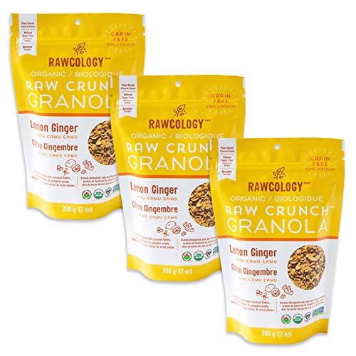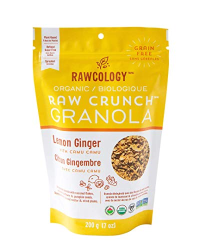 Our grain free Lemon Ginger with Camu Camu Raw Crunch Granola will give your tastebuds a buzz with its tart lemon and ginger kick. It’s packed with coconut flakes, sprouted sunflower and pumpkin seeds, and lightly sweetened with coconut nectar and dried plums. Superfood ingredients include camu camu berry powder and sprouted seeds. Camu Camu berry powder is vitamin C and antioxidant rich. This flavour only has 2 grams of natural sugar per serving, is a low net carb meal or snack, and is dehydrated at low temperature for optimal nutrition, crunch and flavour. Enjoy it with smoothies, yogurt, your milk of choice or on-the-go!