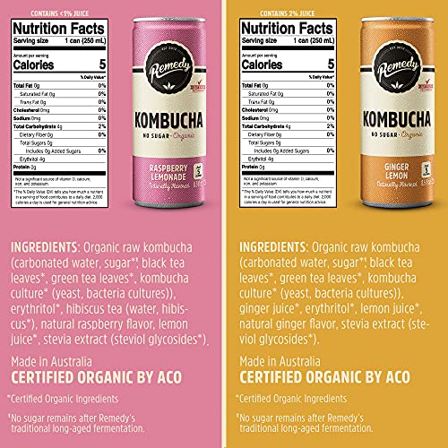 Remedy Raw Organic Kombucha Tea – Sparkling Live Cultured Drink – Sugar Free 2 Flavor Variety Pack – 8.5 Fl Oz Can, 12-Pack