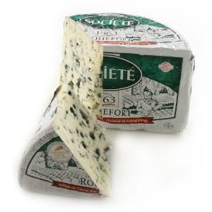 With Roquefort’s fine, milky-white body veined with emerald green, and its well-balanced flavor, this cheese has been appreciated for generations. The secret of Roquefort’s manufacture lies in the cellars built in the 17th century. Thanks to the fleurines that allow the air to circulate in the cellars, Société’s master cheese-makers are able to maintain the relative humidity near to saturation point. These are the ideal conditions for the development of the subtle and unequalled flavor of Roquefort Société. In accordance with the AOC Roquefort regulations, the production of Roquefort requires whole, raw sheep’s milk. In order to be used in Roquefort production, this milk must come from within the Roquefort region, and from the ewe’s of the Lacaune breed. Roquefort Société is delicious on a baguette, salad, or melted on a steak.